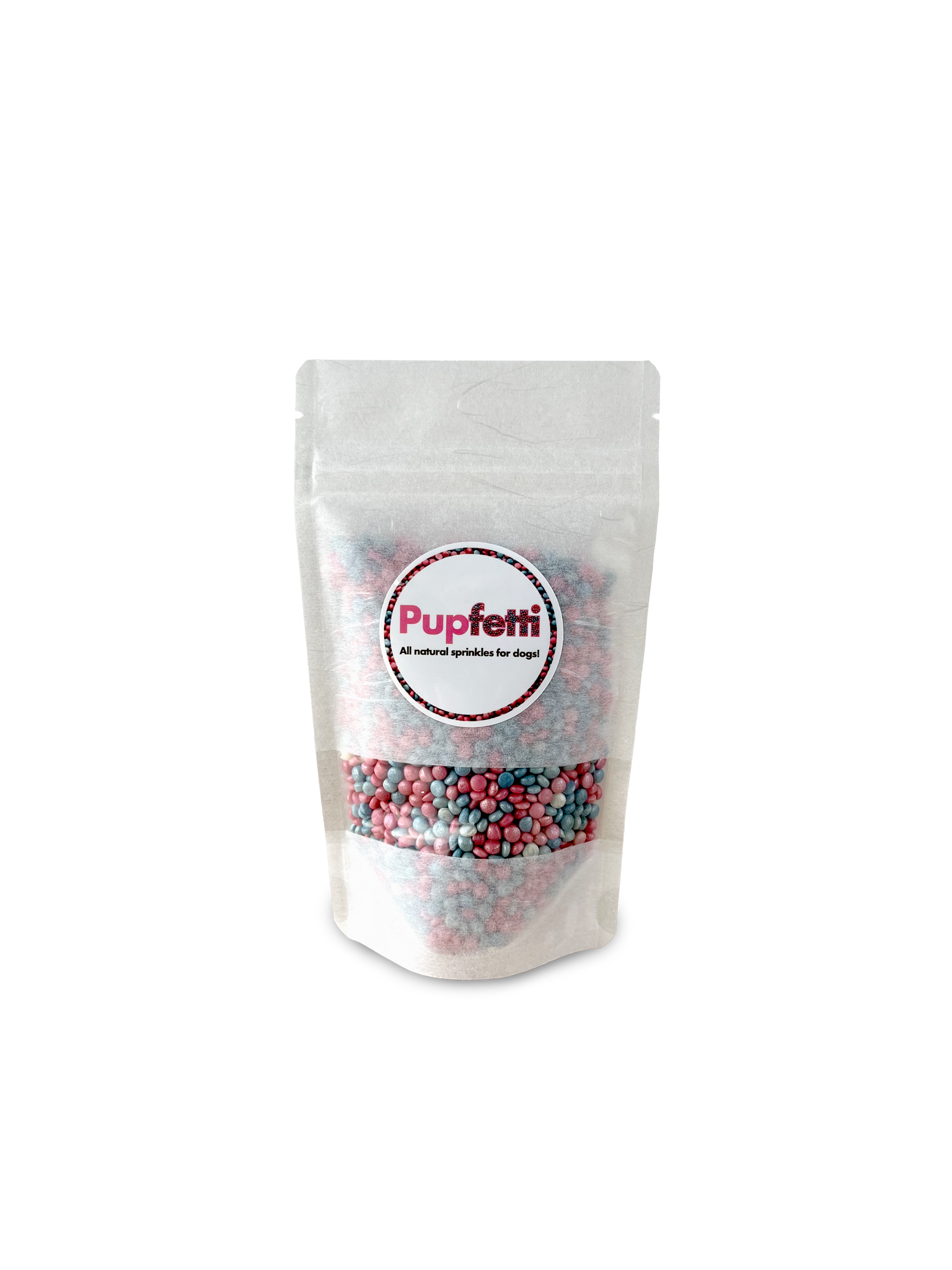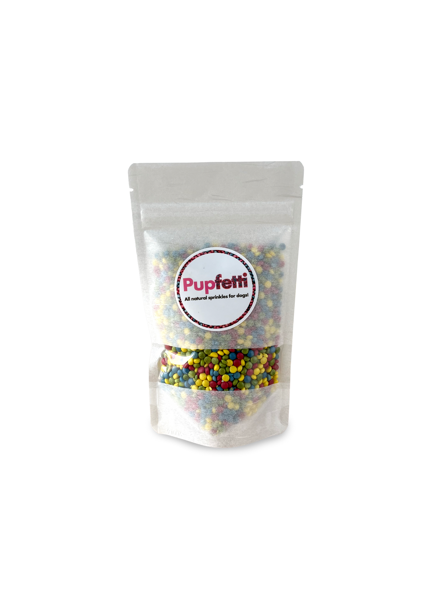 Bag of colorful sprinkles with 'Pupfetti' branding on a white background SALE