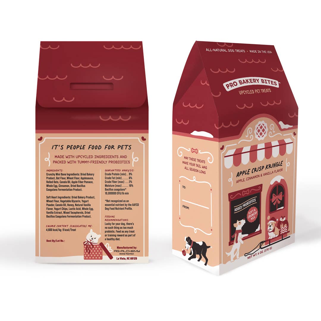 - Crunchy Mini Bone Ingredients: Dried Bakery Product, Oat Flour, Wheat Flour, Applesauce, Rolled Oats, Canola Oil, Apple Fiber Pomace, Whole Egg, Cinnamon, Dried Bacillus Coagulans Fermentation Product.