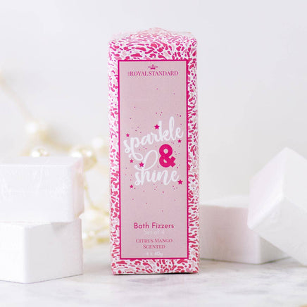 Give the gift of total relaxation with these Sparkle Shimmer & Shine Bath Fizzers by the Royal Standard. Makes a great gift or simply the perfect way to treat yourself.