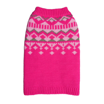 Check out this pretty pink Pup sweater with a modern geometric round yoke design. The size chart is in the photos!