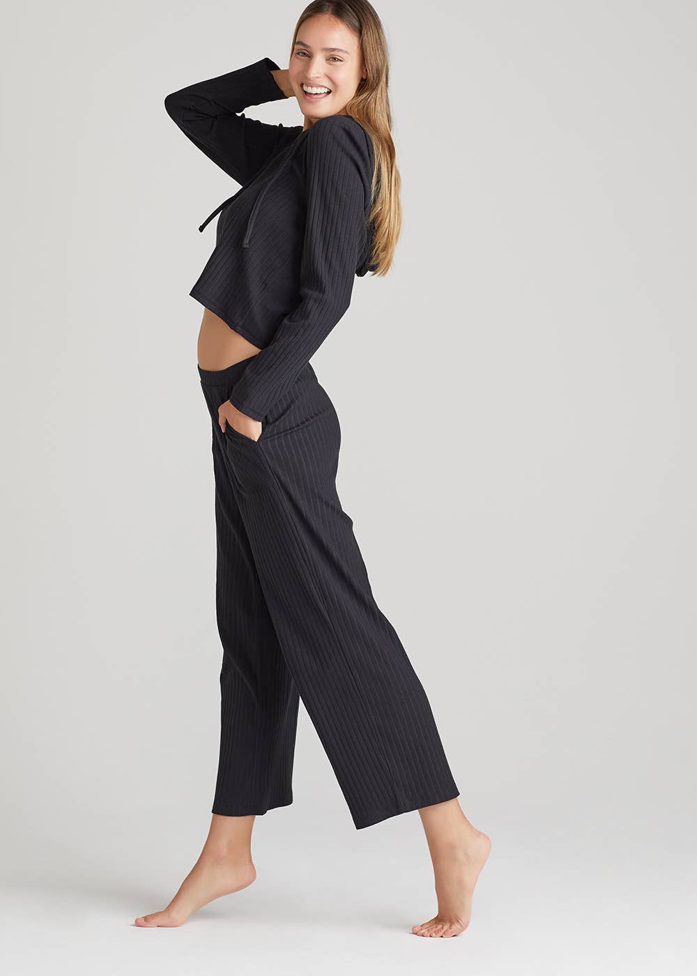 Check out this Casual, Cute & Cropped Rib Hoodie & Wide Leg Pants Set! Look cute & Comfortable on your lounge day.
